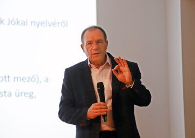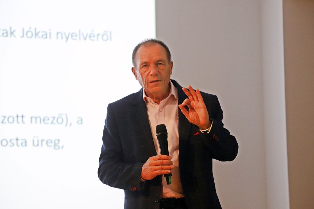 A nyelvész hangsúlyozta, hogy Jókait napjainkban is könnyű olvasni és könnyű érteni, ami azért van, mert a saját korában az élő nyelvet követte. – Napjainkban is Jókai nyelvét használjuk, Jókai nyelvén értünk, nyelvezete nagyon közel áll még ma is hozzánk- vélekedett Balázs Géza, aki kiemelte: az író rendkívüli szókinccsel rendelkezett, friss nyelvet használt, játékosan, könnyeden fogalmazott, büszke volt arra, hogy egy-egy szóra számtalan szinonimát tudott és alkalmazott.